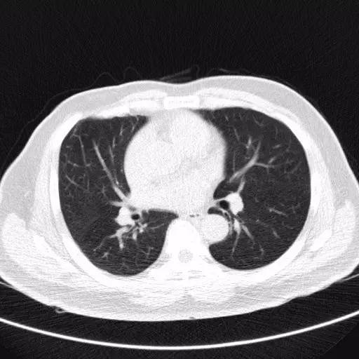 CT比胸片具有更高的灵敏度和特异度,能够显示小结节的二维形态,还能清晰显示小结节周围组织的影像学特点。胸部CT扫描不仅能够更清晰的观察肺部小结节的形态及大小,还能通过不同时间的CT图像动态的比较小结节的变化情况。胸部薄层CT具有更高的分辨率,应该作为评估肺部孤立性小结节性质的首选影像学检查方法。